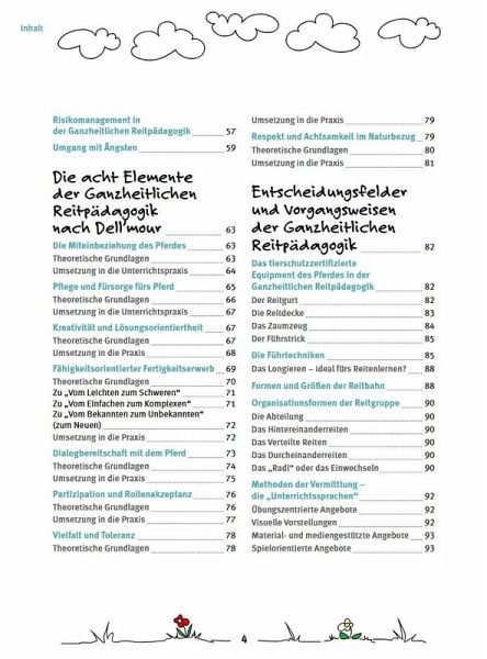 Die ganzheitliche Reitpädagogik nach Dell'mour stellt eine auf Vertrauen und Verständnis basierende Beziehung zwischen Mensch und Pferd in den Mittelpunkt und betont dabei die Bedeutung von Empathie, Achtsamkeit und Kommunikation im Umgang mit Pferden. Die Autorin hat dabei drei verschiedene Konzepte entwickelt, das erste zur reitpädagogischen Betreuung von kleinen Kindern, das zweite zu einem Reitunterricht für ältere Kinder, Jugendliche und Erwachsene, der ein sowohl für Pferd als auch Reiter schönes Erlebnis vermittelt, und schließlich die reittherapeutische Begleitung von Menschen mit verschiedenen Einschränkungen (kognitive, psychomotorische, motorische und affektive). Ihr Fachbuch leistet einen Beitrag zum Pferdewohl und zum Tierschutz. Die stets gepriesene Ethik im Reitsport bekommt hier konkrete Anleitungen für deren Umsetzung in einem lehrbaren und lebbaren Konzept.