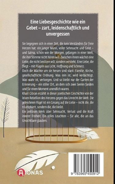 Eine Liebesgeschichte wie ein Gebet - zart, leidenschaftlich und unvergessen Sie begegnen sich in einer Zeit, die kein Verständnis für freie Herzen hat: ein junger Mann, voller Sehnsucht und Geist - und Salma, schön wie der Morgen, gefangen in einer Welt, die ihre Stimme nicht hören will. Zwischen ihnen wächst eine Liebe, die nicht besitzen will, sondern versteht. Eine Liebe, die fliegt - mit Flügeln aus Licht, Hoffnung und Schmerz. Doch die Mächte um sie herum sind stark: Familie, Kirche, gesellschaftliche Ordnung. Was rein ist, wird verdächtigt. Was wahr ist, verborgen. Und so bleibt nur der Garten der Erinnerung - ein stiller Ort, an dem sich zwei Seelen fanden und für einen Moment unendlich waren. Khalil Gibran erzählt in dieser poetischen Geschichte von der leisen Rebellion des Herzens gegen das Unrecht der Welt. Die gebrochenen Flügel ist ein Gesang auf die Liebe - nicht die, die triumphiert, sondern die, die bleibt. Ein zeitloses Werk über Sehnsucht, Verlust und die Kraft innerer Freiheit. Ein stilles Leuchten - für alle, die an das Unsichtbare glauben.