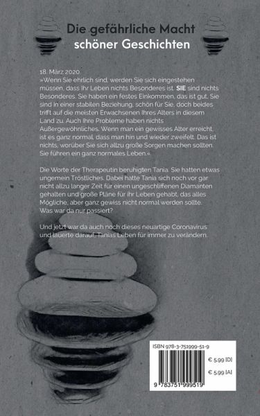 18. März 2020.»Wenn Sie ehrlich sind, werden Sie sich eingestehen müssen, dass Ihr Leben nichts Besonderes ist. Sie sind nichts Besonderes. Sie haben ein festes Einkommen, das ist gut, Sie sind in einer stabilen Beziehung, schön für Sie, doch beides trifft auf die meisten Erwachsenen Ihres Alters in diesem Land zu. Auch Ihre Probleme haben nichts Außergewöhnliches. Wenn man ein gewisses Alter erreicht, ist es ganz normal, dass man hin und wieder zweifelt. Das ist nichts, worüber Sie sich allzu große Sorgen machen sollten. Sie führen ein ganz normales Leben.«Die Worte der Therapeutin beruhigten Tania. Sie hatten etwas ungemein Tröstliches. Dabei hatte Tania sich noch vor gar nicht allzu langer Zeit für einen ungeschliffenen Diamanten gehalten und große Pläne für ihr Leben gehabt, das alles Mögliche, aber ganz gewiss nicht normal werden sollte.Was war da nur passiert?Und jetzt ist da auch noch dieses neuartige Coronavirus und lauert darauf, Tanias Leben für immer zu verändern.