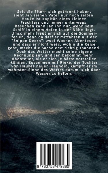 Seit die Eltern sich getrennt haben, sieht Jan seinen Vater nur noch selten. Hauke ist Kapitän eines kleinen Frachters und immer unterwegs. Besuchen kann Jan ihn nur, wenn sein Schiff in einem Hafen in der Nähe liegt. Umso mehr freut er sich auf die Sommerferien, denn da darf er mitfahren auf der "Snippe Deern": zwei Wochen Abenteuer, und dass er nicht weiß, wohin die Reise geht, macht die Sache erst richtig spannend. Doch das Wetter macht seine eigene Rechnung auf, und Jan bekommt mehr Abenteuer, als er sich je hätte vorstellen können. Zusammen mit Rieke, der Tochter von Haukes neuer Freundin, kämpft er im wahrsten Sinne des Wortes darum, sich über Wasser zu halten.