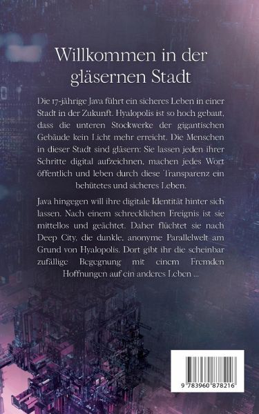 Willkommen in der gläsernen StadtDer erste Teil des spannenden Zweiteilers für Fans von Kerry DreweryDie 17-jährige Java führt ein sicheres Leben in einer Stadt in der Zukunft. Hyalopolis ist so hoch gebaut, dass die unteren Stockwerke der gigantischen Gebäude kein Licht mehr erreicht. Die Menschen in dieser Stadt sind gläsern: Sie lassen jeden ihrer Schritte digital aufzeichnen, machen jedes Wort öffentlich und leben durch diese Transparenz ein behütetes und sicheres Leben.Java hingegen will ihre digitale Identität hinter sich lassen. Nach einem schrecklichen Ereignis ist sie mittellos und geächtet. Daher flüchtet sie nach Deep City, die dunkle, anonyme Parallelwelt am Grund von Hyalopolis. Dort gibt ihr die scheinbar zufällige Begegnung mit einem Fremden Hoffnungen auf ein anderes Leben ...Erste Lesertimmen"Eine wirklich gelungene Fantasy-Geschichte, die ich nur weiterempfehlen kann.""Toller futuristischer Roman, der einen nicht mehr loslässt!""Ich habe die ganze Zeit mit Java mitgefiebert und war gespannt, was Glass mit ihr vorhat ...""Emily Dunwood hat es geschafft mich ab Seite eins in ihren Bann zu ziehen.""Eine Thematik, die auch heute aktuell ist - mitreißend!"Über den Autor/die Autorin Emily Dunwood, Jahrgang 1995, lebt, schreibt und studiert in Berlin. Diskussionen um Social Media, den gläsernen Menschen und das Dark Web inspirierten sie zu ihrem Debüt, dem Zweiteiler Java & Glass.
