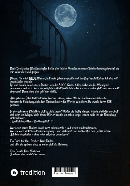 Der Schriftsteller Bodo Deletz hat vor geraumer Zeit ein Quartett rausgebracht und da mich der Inhalt so geflasht hatte, ist daraus "die geheime Bibliothek" entstanden. Die vielen Worthülsen mit "neuer" Bedeutung, die bei mir und einigen anderen Lesern, zu mehr Lebensfreude und Leichtigkeit führten. Ich finde es immer wieder beeindruckend was Wörter, eine NEUE Herangehensweise und ein komplexeres Wissen, bei einem Menschen bewirken kann. Dieses Buch ist KEIN normales Buch - es ist eine Lektüre, die das LEBEN, so wie man es bis jetzt betrachtet hat, auf den Kopf stellen kann. Natürlich nur dann…mehr