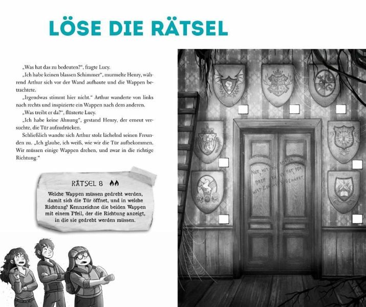 Die Handlung baut sich von Anbeginn an fesselnd auf, gewinnt rasch an Fahrt und bleibt konstant mitreisend und spannend. Durchweg fühlt man sich eins mit den Freunden, fiebert bei ihren Abenteuern mit und wird durch die Rätsel jeweils am Ende eines Kapitels dazu animiert mitzuknobeln. Diese sind sehr abwechslungsreich vom Schwierigkeitsgrad teilweise sehr taff, zum knobeln aber auch einige recht schnell gelöst. Das macht Spass, lässt noch tiefer in die Geschichte eintauchen und sorgt für grossartige Leseunterhaltung. Und sollte man mal doch nicht weiterwissen so kann man sich Tipps von Drache Happy auf den letzten Seiten geben lassen. Doch man sei gewarnt, das er nicht zimperlich mit der ein oder anderen Beleidiung ist. Richtig toll ist auch der Schreibstil, der sich sehr fesselnd, locker und leicht liest. Der Wortlaut ist altersgerecht, gut verständlich und fliessend zu lesen.