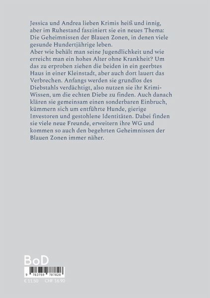 ein Haus in einer Kleinstadt erbt, renoviert zusammen mit Andrea, die mit ihr dort einzieht. Schnell…mehrIn diesem kleinen Büchlein wird von Jessica und ihrer WG erzählt. Jessica hat den Wunsch alt zu werden und gesund zu bleiben, deshalb recherchiert sie, wo uns wie Menschen auf dieser Welt diese Aufgabe gut bewältigen. Der Lebensraum dieser Menschen nennt sich „Blaue Zone“. Als Jessica überraschend ein Haus in einer Kleinstadt erbt, renoviert zusammen mit Andrea, die mit ihr dort einzieht. Schnell sind noch andere WG-Bewohner*innen gefunden und so schaffen sie es Haus und Garten und vor allem sich selbst gut zu versorgen.