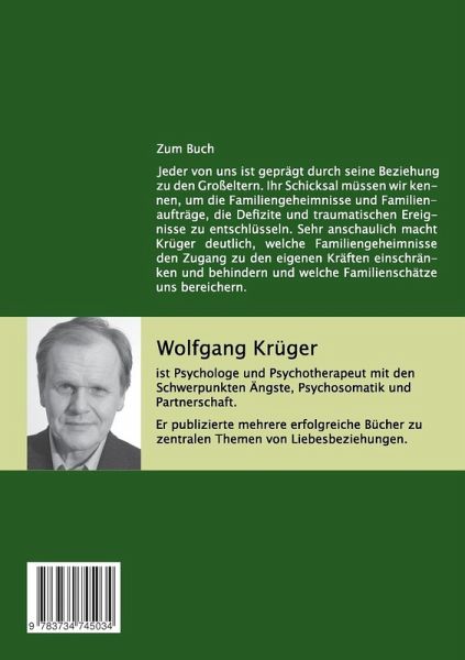 Jeder von uns ist geprägt durch seine Beziehung zu den Großeltern. Ihr Schicksal müssen wir kennen, um die Familiengeheimnisse und Familienaufträge, die Defizite und traumatischen Ereignisse zu entschlüsseln. Sehr anschaulich macht Krüger deutlich, welche Familiengeheimnisse den Zugang zu den eigenen Kräften einschränken und behindern und welche Familienschätze uns bereichern.