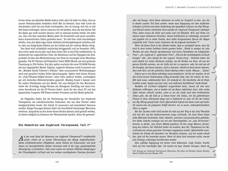 Unterhaltsam, kurzweilig, informativ: "Die Geheimnisse von Monkey Island - Auf Kapertour mit Pixel-Piraten" ist DAS Buch für Fans des legendären Point'n'Click-Adventure-Reihe "Monkey Island". Das Buch erscheint zeitgleich zum neuen Teil von Monkey Island, der erstmals nach 30 Jahren wieder vom ursprünglichen Entwickler Ron Gilbert kreiert wurde. "Macht, was ihr wollt, aber macht coole Sachen!" - George Lucas am 1. Mai 1982. Das war das einzige Ziel, das George Lucas seinen zwanzig jungen, ehrgeizigen, lustigen und schlecht frisierten Game-Designern als Rahmen für die Entwicklung von eigenen Computerspielen setzte. Lucasfilm Games und später LucasArts wurde in der Folgezeit zu einer legendären Spieleschmiede, auch durch die Veröffentlichung von The Secret of Monkey Island(TM) im Jahr 1990. Das bekannteste Point'n'Click-Adventure verdankt seinen legendären Ruf seiner herrlich anachronistischen Welt voller bunter Piraten und seinem von Monty Python inspirierten Humor, aber auch schlicht und einfach der Tatsache, dass es ein komplettes Genre revolutioniert hat. Dieses Buch ist eine Hommage an die Abenteuer von Guybrush Threepwood, einem genialen Piraten. Aber es möchte Ihnen auch in vielen Details schildern, wie Monkey Island durch seine einzigartige Erzählkunst zum Meilenstein in der Videospielgeschichte wurde. Darüber hinaus bietet es die Gelegenheit, auf die turbulente Historie von LucasArts und Telltale Games zurückzublicken, Rezepte für Voodoo-Grog zu entdecken, interaktive Piratenreggae-Songs zu lernen, auf einer mondänen Party unter 40-jährigen Geeks zu glänzen und Sprüche zu erkunden, die so scharf wie ein Entermesser sind (nützlich für Duelle oder Geburtstagsfeiern). Die zweite, erweiterte und aktualisierte Auflage bietet zwei neue Bonuskapitel, 36 zusätzliche Bildseiten sowie jede Menge neue Hintergrundinformationen, Anekdoten und Trivia.