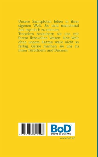 Unsere Samtpfoten leben in ihrer eigenen Welt.Sie sind manchmal fast mystisch zu nennen.Trotzdem bezaubern sie uns mit ihrem liebevollen Wesen.Eine Welt ohne unsere Katzen wäre nicht so farbig.Gerne machen sie uns zu ihren Türöffnern und Dienern.