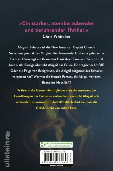 Als sie die einzige Überlebende eines Feuers ist, bei dem das Haus ihrer Familie bis auf die Grundmauern niederbrennt, scheint es sich um einen tragischen Unfall zu handeln. Bis überraschend herauskommt, dass Abigail vor dem Brand eine fremde Person ins Haus ließ. Wer war es? Was hat das Feuer ausgelöst? Und kam die Gefahr wirklich von außen?
