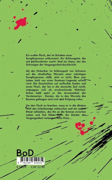 Ein uralter Fluch, der im Schatten einer Sumpfzypresse schlummert. Ein Schlossgeist, der seit Jahrhunderten wacht. Und ein Mann, der das Schweigen der Vergangenheit durchbricht. Als der Historiker im Schlosspark von Schwerin auf die rätselhaften Wurzeln einer mächtigen Sumpfzypresse stößt, ahnt er nicht, dass sein Leben bald von einer finsteren Legende erfasst wird. Die Geschichten um verfluchte Seelen und einen Fluch, der bis in die slawische Zeit reicht, entpuppen sich als erschreckende Wahrheit. Schon bald spürt er die Anwesenheit der Versteinerten - Geister, die in den Wurzeln des Baumes gefangen sind und nach Erlösung rufen. Um den Fluch zu brechen, muss er in die düstere Welt des Unbekannten eintauchen und ein uraltes Ritual vollziehen, das ihn an die Grenze zwischen Leben und Tod führt. Doch die Geister der Vergangenheit verlangen ihren Preis... "Die Geister der Sumpfzypresse" ist eine mystische Reise ins Unheimliche, eine Geschichte von Erlösung und Opfer, die den Leser in die verborgenen Geheimnisse eines historischen Schlossparks eintauchen lässt.
