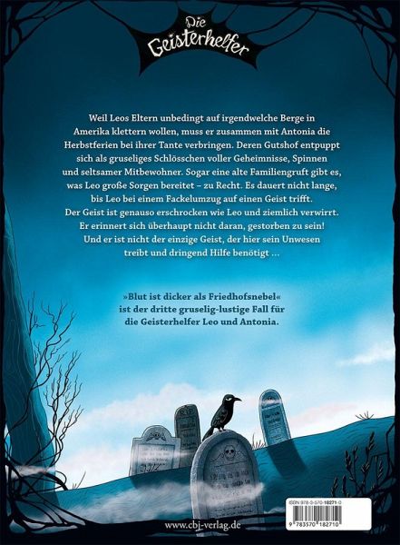 »Blut ist dicker als Friedhofsnebel« ist der dritte Band der gruselig-lustigen Geisterhelfer-Reihe für Kinder ab 8 Jahren.