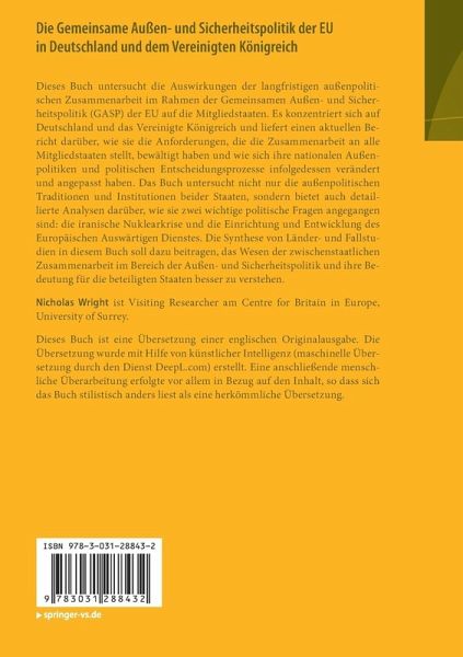 Dieses Buch untersucht die Auswirkungen der langfristigen außenpolitischen Zusammenarbeit im Rahmen der Gemeinsamen Außen- und Sicherheitspolitik (GASP) der EU auf die Mitgliedstaaten. Es konzentriert sich auf Deutschland und das Vereinigte Königreich und liefert einen aktuellen Bericht darüber, wie sie die Anforderungen, die die Zusammenarbeit an alle Mitgliedstaaten stellt, bewältigt haben und wie sich ihre nationalen Außenpolitiken und politischen Entscheidungsprozesse infolgedessen verändert und angepasst haben. Das Buch untersucht nicht nur die außenpolitischen Traditionen und Institutionen beider Staaten, sondern bietet auch detaillierte Analysen darüber, wie sie zwei wichtige politische Fragen angegangen sind: die iranische Nuklearkrise und die Einrichtung und Entwicklung des Europäischen Auswärtigen Dienstes. Die Synthese von Länder- und Fallstudien in diesem Buch soll dazu beitragen, das Wesen der zwischenstaatlichen Zusammenarbeit im Bereich der Außen- und Sicherheitspolitik und ihre Bedeutung für die beteiligten Staaten besser zu verstehen.