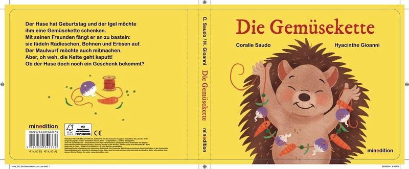 Der Hase hat Geburtstag, und der Igel möchte ihm eine Gemüsekette schenken.Mit seinen Freunden fängt er an zu basteln: sie fädeln Radieschen, Bohnen und Erbsen auf. Der Maulwurf möchte auch mitmachen, aber weil er schlecht sieht, stolpert er über die Gemüsekette und sie geht kaputt. Was nun?Kein Problem, dann bekommt der Hase eben eine Gemüsesuppe zum Geburtstag!- Über Toleranz und Einfühlungsvermögen - Regt an zum gemeinsamen Basteln- Ideales GeburtstagsgeschenkPappbilderbuch für Kinder ab 2 Jahren
