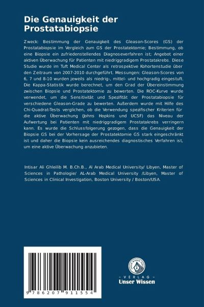 Zweck: Bestimmung der Genauigkeit des Gleason-Scores (GS) der Prostatabiopsie im Vergleich zum GS der Prostatektomie; Bestimmung, ob eine Biopsie ein zufriedenstellendes Diagnoseverfahren ist; Angebot einer aktiven Überwachung für Patienten mit niedriggradigem Prostatakrebs. Diese Studie wurde im Tuft Medical Center als retrospektive Kohortenstudie über den Zeitraum von 2007-2010 durchgeführt. Messungen: Gleason-Scores von 6, 7 und 8-10 wurden jeweils als niedrig-, mittel- und hochgradig eingestuft. Die Kappa-Statistik wurde berechnet, um den Grad der Übereinstimmung zwischen Biopsie und Prostatektomie zu bewerten. Die ROC-Kurve wurde verwendet, um die Sensitivität und Spezifität der Prostatabiopsie für verschiedene Gleason-Grade zu bewerten. Außerdem wurde mit Hilfe des Chi-Quadrat-Tests verglichen, ob die Verwendung spezifischer Kriterien für die aktive Überwachung (Johns Hopkins und UCSF) das Niveau der Aufwertung bei Patienten mit niedriggradigem Prostatakrebs verringern kann. Es wurde die Schlussfolgerung gezogen, dass die Genauigkeit der Biopsie GS bei der Vorhersage der Prostatektomie GS stark eingeschränkt ist und daher die Biopsie kein ausreichendes diagnostisches Verfahren ist, um eine aktive Überwachung anzubieten.