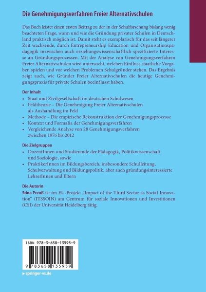 Unabhängigvon der Diskussion um die Befürwortung oder der Ablehnung privater Schulenleistet dieses Buch einen ersten Beitrag zu der bislang in der Schulforschungwenig beachteten Frage, wann und wie die Gründung privater Schulen inDeutschland praktisch möglich ist. Mit derAnalyse von Genehmigungsverfahren Freier Alternativschulen wird untersucht, welchenEinfluss staatliche Vorgaben spielen und vor welchen Problemen Schulgründerstehen. Das Ergebnis zeigt auch, wie Gründer Freier Alternativschulen dieheutige Genehmigungspraxis für private Schulen beeinflusst haben.