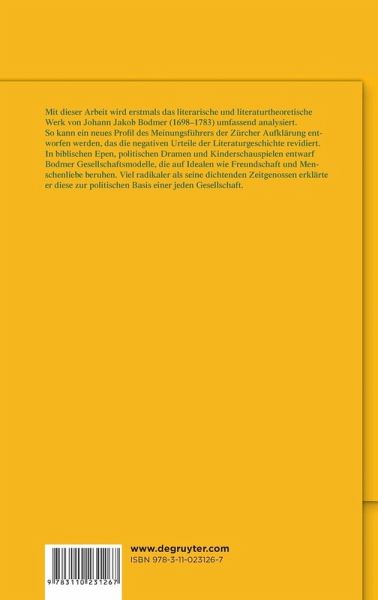 Mit dieser Arbeit wird erstmals das literarische und poetologische Schaffen von Johann Jakob Bodmer (1698-1783) umfassend analysiert. Aus ideengeschichtlicher Perspektive werden lokale und europäische Debatten miteinander in Bezug gesetzt und so ein neues Profil des Meinungsführers der Zürcher Aufklärung entworfen, das die negativen Urteile der Literaturgeschichte revidiert.