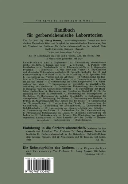 A. Allgemeiner Teil.- I. Die Kennzeichnung der Gerbextrakte.- II. Vergleich der Gerb Wirkung von Extrakten und rohen Gerbmaterialien.- III. Die gerbereitechnologische Charakteristik der Extrakte.- B. Spezieller Teil.- I. Die Zerkleinerung der Gerbmaterialien.- II. Die Diffusion.- III. Die Verdampfung der Brühen.- IV. Reinigung der Brühen.- V. Transportvorrichtungen.- VI. Die Verwertung der Lohe.- VII. Allgemeine Angaben für die Berechnung von Extraktfabriken.- VIII. Die Entwicklungsmöglichkeiten der Fabrikation von Gerbextrakten m der U. d. S. S. R.- 1. Weltgerbstoffverbrauch und -produktion.- 2. Bedarf an Gerbstoffen in der U. d. S. S. R.- 3. Weltextraktproduktion.- 4. Gehaltreiche Gerbmittel in der U. d. S. S. R.- 5. Die Kastanie.- 6. Die Eiche.- 7. Gerbstoffgehalt in der Höhenrichtung der Eiche.- 8. Gerbstoffgehalt im Querschnitt und nach der Höhe der Kastanie.- 9. Die Eichenwälder.- 10. Vergleich der Eichenwälder mit den Quebrachowäldern.- 11. Die Fichte.- 12. Die Weide.- 13. Die Eichenrinde.- 14. Die Mimosarinde.- Schlußbetrachtung.- Namenverzeichnis.