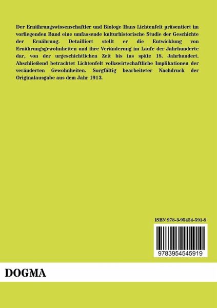 Der Ernährungswissenschaftler und Biologe Hans Lichtenfelt präsentiert im vorliegenden Band eine umfassende kulturhistorische Studie der Geschichte der Ernährung. Detailliert stellt er die Entwicklung von Ernährungsgewohnheiten und ihre Veränderung im Laufe der Jahrhunderte dar, von der urgeschichtlichen Zeit bis ins späte 18. Jahrhundert. Abschließend betrachtet Lichtenfelt volkswirtschaftliche Implikationen der veränderten Gewohnheiten. Sorgfältig bearbeiteter Nachdruck der Originalausgabe aus dem Jahr 1913.