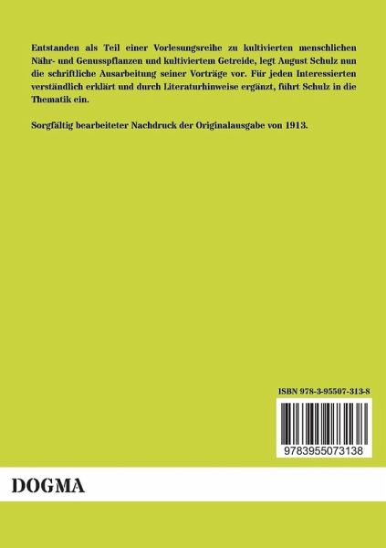 Entstanden als Teil einer Vorlesungsreihe zu kultivierten menschlichen Nähr- und Genusspflanzen und kultiviertem Getreide, legt August Schulz nun die schriftliche Ausarbeitung seiner Vorträge vor. Für jeden Interessierten verständlich erklärt und durch Literaturhinweise ergänzt, führt Schulz in die Thematik ein.