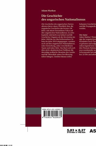 Die Geschichte des ungarischen Nationalismus bietet einen Überblick über die ungarische Geschichte der letzten 150 Jahre, mit einem besonderen Fokus auf den ungarischen Nationalismus. In zehn Kapiteln wird nicht nur kritisch auf die Geschichte Ungarns ab der Revolution im Jahre 1848 bis zur Machtübernahme Orbáns im Jahre 2010 eingegangen, sondern auch auf den ungarischen Nationalismus, seine Entstehung, seine verschiedenen Typen und seine Ziele. Das Buch soll auch dem nicht-akademischen Publikum die derzeitige politische Situation des Landes und die Mentalität seiner Bevölkerung näher bringen. Darüber hinaus sollen bekannte Geschichtsmythen aufgedeckt und die Propaganda dahinter enthüllt werden.