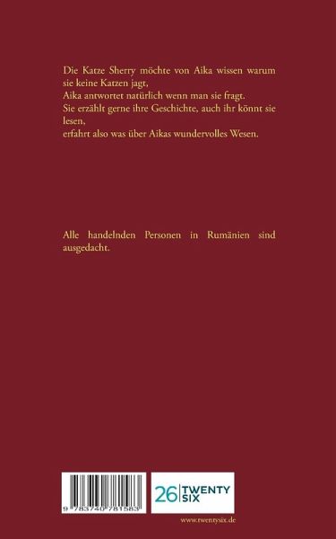Sherry die Katze möchte von Aika wissen warum sie keine Katzen jagt. Aika erzählt ihr daraufhin ihre Geschichte.Aika ist ein aus Rumänien stammender ehemaliger Straßenhund, ihre Geschichte wird in Reimen erzählt.Straßenhunde haben es in Rumänien und auch in anderen Ländern nicht leicht, umso dankbarer sind sie, wenn sie eine liebevolle Familie finden. Die handelnden Personen in Rumänien sind ausgedacht. Was genau Aika widerfahren ist weiß niemand.