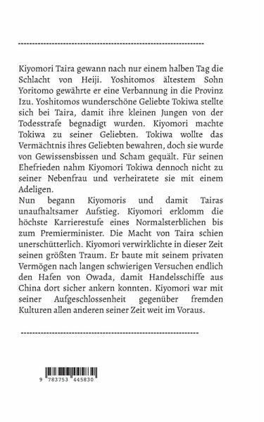 Eiji Yoshikawa (1892 - 1962) ist einer der bekanntesten Schriftsteller der volksnahen Literatur in Japan. Er schrieb schon früh Romane über historische Personen und Themen. So veröffentlichte er von 1935 bis 1939 den Serienroman Miyamoto Musashi in einer Wochenzeitung. Kein anderer Serienroman wurde so viel gelesen wie Miyamoto Musashi. Seine schriftstellerische Darstellung des berühmten Schwertkämpfers fand bei den Japanern, die unter den miserablen Umständen des Zweiten Weltkriegs (des Pazifischen Kriegs) litten, ein starkes Echo. Als Roman der volksnahen Literatur wurde Miyamoto Musashi ein großer Erfolg. Eiji Yoshikawa war von der Niederlage des Zweiten Weltkrieges und der unvorstellbaren Zerstörung Japans sehr enttäuscht und konnte mehrere Jahre nicht schreiben. Er begann erst 1950, den großen Roman Shin Heike Monogatari (die Geschichte von Taira - neue Interpretation) zu schreiben und schloss ihn nach 7 Jahren ab. In diesem, ebenfalls als Zeitungsserie erschienenen Roman erzählte Eiji Yoshikawa über den ersten brutalen Bürgerkrieg Japans und die Schicksale der Menschen. Dieser lange Historienroman sprach viele Japaner an, die in den Folgejahren nach dem Zweiten Weltkrieg arg gebeutelt waren, und wurde mit mehreren Literaturpreisen ausgezeichnet. Eiji Yoshikawa schrieb bis zu seinem Tod weitere Historienromane.
