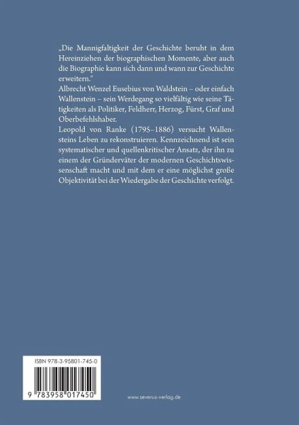 Leopold von Ranke (1795-1886) versucht Wallensteins Leben zu rekonstruieren. Kennzeichnend ist sein systematischer und quellenkritischer Ansatz, der ihn zu einem der Gründerväter der modernen Geschichtswissenschaft macht und mit dem er eine möglichst große Objektivität bei der Wiedergabe der Geschichte verfolgt.