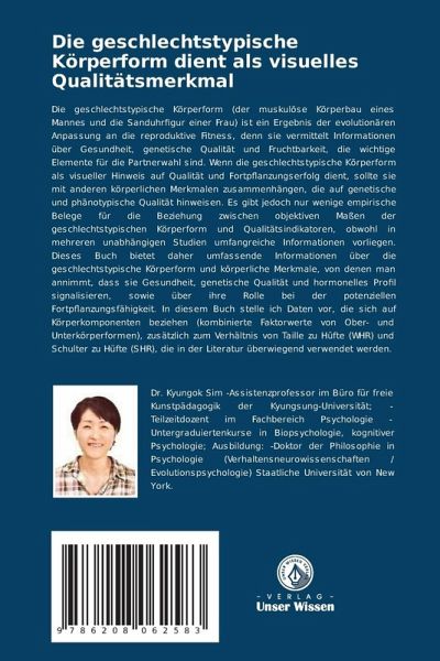 Die geschlechtstypische Körperform (der muskulöse Körperbau eines Mannes und die Sanduhrfigur einer Frau) ist ein Ergebnis der evolutionären Anpassung an die reproduktive Fitness, denn sie vermittelt Informationen über Gesundheit, genetische Qualität und Fruchtbarkeit, die wichtige Elemente für die Partnerwahl sind. Wenn die geschlechtstypische Körperform als visueller Hinweis auf Qualität und Fortpflanzungserfolg dient, sollte sie mit anderen körperlichen Merkmalen zusammenhängen, die auf genetische und phänotypische Qualität hinweisen. Es gibt jedoch nur wenige empirische Belege für die Beziehung zwischen objektiven Maßen der geschlechtstypischen Körperform und Qualitätsindikatoren, obwohl in mehreren unabhängigen Studien umfangreiche Informationen vorliegen. Dieses Buch bietet daher umfassende Informationen über die geschlechtstypische Körperform und körperliche Merkmale, von denen man annimmt, dass sie Gesundheit, genetische Qualität und hormonelles Profil signalisieren, sowie über ihre Rolle bei der potenziellen Fortpflanzungsfähigkeit. In diesem Buch stelle ich Daten vor, die sich auf Körperkomponenten beziehen (kombinierte Faktorwerte von Ober- und Unterkörperformen), zusätzlich zum Verhältnis von Taille zu Hüfte (WHR) und Schulter zu Hüfte (SHR), die in der Literatur überwiegend verwendet werden.