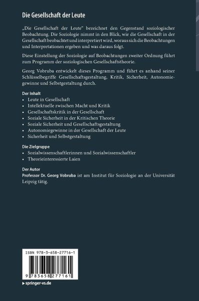 "Die Gesellschaft der Leute" bezeichnet den Gegenstand soziologischer Beobachtung. Die Soziologie nimmt in den Blick, wie die Gesellschaft in der Gesellschaft beobachtet und interpretiert wird, woraus sich die Beobachtungen und Interpretationen ergeben und was daraus folgt.