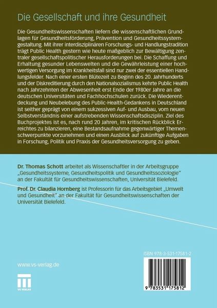 Die Gesundheitswissenschaften liefern die wissenschaftlichen Grundlagen für Gesundheitsförderung, Prävention und Gesundheitssystemgestaltung. Mit ihrer interdisziplinären Forschungs- und Handlungstradition trägt Public Health gestern wie heute maßgeblich zur Bewältigung zentraler gesellschaftspolitischer Herausforderungen bei. Die Schaffung und Erhaltung gesunder Lebenswelten und die Gewährleistung einer hochwertigen Versorgung im Krankheitsfall sind nur zwei der essentiellen Handlungsfelder. Nach einer ersten Blütezeit zu Beginn des 20. Jahrhunderts und der Diskreditierung durch den Nationalsozialismus kehrte Public Health nach Jahrzehnten der Abwesenheit erst Ende der 1980er Jahre an die deutschen Universitäten und Fachhochschulen zurück. Die Wiederentdeckung und Neubelebung des Public-Health-Gedankens in Deutschland ist seither geprägt von einem sukzessiven Auf- und Ausbau, vom neuen Selbstverständnis einer aufstrebenden Wissenschaftsdisziplin. Ziel des Buchprojektes ist es, nach rund 20 Jahren, im kritischen Rückblick Erreichtes zu bilanzieren, eine Bestandsaufnahme gegenwärtiger Themenschwerpunkte vorzunehmen und einen Ausblick auf zukünftige Aufgaben in Forschung, Politik und Praxis der Gesundheitsversorgung zu geben.
