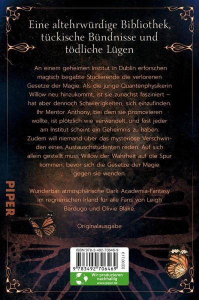 Willows Leben ändert sich schlagartig, als sie von einem geheimen Institut erfährt und dort zur Aufnahmeprüfung angenommen wird. Als Quantenphysikerin ist Willow durch und durch eine Wissenschaftlerin. Trotzdem muss sie schnell akzeptieren, dass es Dinge gibt, die sie nie für möglich gehalten hätte. Denn in diesem Institut werden die Gesetze der Magie erforscht. Und was hat es mit dem merkwürdigen Verschwinden eines Studenten auf sich?