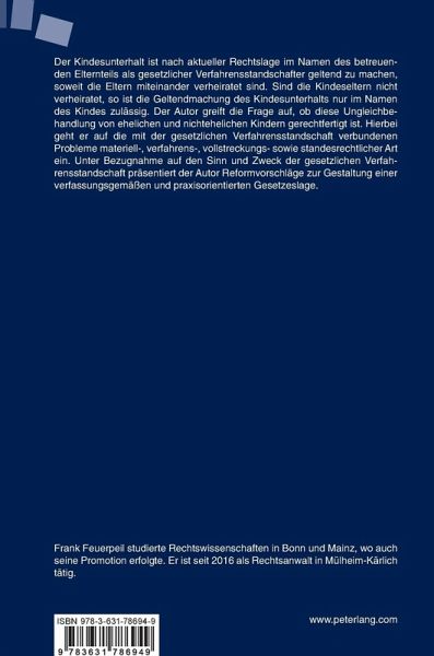 Der Kindesunterhalt ist nach aktueller Rechtslage im Namen des betreuenden Elternteils als gesetzlicher Verfahrensstandschafter geltend zu machen, soweit die Eltern miteinander verheiratet sind. Sind die Kindeseltern nicht verheiratet, so ist die Geltendmachung des Kindesunterhalts nur im Namen des Kindes zulässig. Der Autor greift die Frage auf, ob diese Ungleichbehandlung von ehelichen und unehelichen Kindern gerechtfertigt ist. Hierbei geht er auf die mit der gesetzlichen Verfahrensstandschaft verbundenen Probleme materiell-, verfahrens-, vollstreckungs- sowie standesrechtlicher Art ein. Unter Bezugnahme auf den Sinn und Zweck der gesetzlichen Verfahrensstandschaft präsentiert der Autor Reformvorschläge zur Gestaltung einer verfassungsgemäßen und praxisorientierten Gesetzeslage.