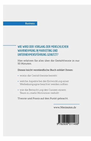 In nur 50 Minuten die Gestalttheorie verstehen Die Gestalttheorie beruht auf dem einfachen Prinzip, dass das Ganze mehr ist als die Summe seiner Teile. So kann der Mensch sowohl Objekte als auch Geschehnisse als Ganzes und nicht nur in deren einzelnen Details wahrnehmen. Oft geschieht dies sogar automatisch, beispielsweise beim Musikhören. Im Marketing wie auch in der Unternehmensführung können die Grundsätze der Gestalttheorie gewinnbringend eingesetzt werden. Dabei geht es in der Werbung hauptsächlich darum, einer Zielgruppe die gewünschte Botschaft zu übermitteln, indem die Wahrnehmung der potenziellen Käufer durch bestimmte Reize beeinflusst wird. In der Unternehmungsführung hingegen kann durch die individuelle Wertschätzung eines jeden Mitarbeiters und das Hervorheben der Beziehungen zwischen den einzelnen Mitarbeitern eine neue Gruppendynamik geschaffen werden, die zu einem leistungsstärkeren Team führt. Nach 50 Minuten können Sie: ¿ verschiedene Tendenzen der menschlichen Wahrnehmung erkennen ¿ wichtige Elemente der Gestalttheorie in Marketingkampagnen ausmachen ¿ und für solche anwenden ¿ einem Team dank eines ganzheitlichen Führungsstils zu mehr Leistung verhelfen Anhand praktischer Beispiele wird die Theorie leicht verständlich veranschaulicht. So erhalten Sie einen interessanten und praxisorientierten Überblick über das Wesentliche. Der Einstieg in ein neues Kapitel Ihrer Unternehmensgeschichte! Über 50MINUTEN.DE BUSINESS ¿ MANAGEMENT UND MARKETING Was bewegt die Wirtschaftswelt? Mit der Serie Business ¿ Management und Marketing der Reihe 50Minuten verstehen Sie schnell die wichtigsten Modelle und Konzepte. Unsere Titel versorgen Sie mit der notwendigen Theorie, prägnanten Definitionen der Schlüsselwörter und interessanten Fallstudien in einem einfachen und leicht verständlichen Format. Sie sind der ideale Ausgangspunkt für Leserinnen und Leser, die ihre Fähigkeiten und Kenntnisse erweitern möchten.