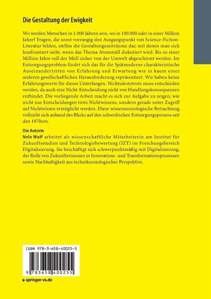 Wo werden Menschen in 1.000 Jahren sein, wo in 100.000 oder in einer Million Jahre? Fragen, die sonst vorrangig den Ausgangspunkt von Science-Fiction-Literatur bilden, stellen die Gestaltungszeiträume dar, mit denen man sich konfrontiert sieht, wenn das Thema Atommüll diskutiert wird. Bis zu einer Million Jahre soll der Müll sicher von der Umwelt abgeschirmt werden. Im Entsorgungsproblem findet sich das für die Spätmoderne charakteristische Auseinandertreten von Erfahrung und Erwartung wie in kaum einer anderen gesellschaftlichen Herausforderung repräsentiert. Wir haben keine Erfahrungswerte für dieses Unterfangen. Nichtsdestotrotz muss entschieden werden, da auch eine Nicht-Entscheidung nicht von Handlungskonsequenzen entbindet. Die vorliegende Arbeit macht es sich zur Aufgabe zu zeigen, wie nicht nur Entscheidungen trotz Nichtwissens, sondern gerade unter Zugriff auf Nichtwissen ermöglicht werden. Diese wissenssoziologische Betrachtung vollzieht sich anhand des Blicks auf den schwedischen Entsorgungsprozess seit den 1970ern.