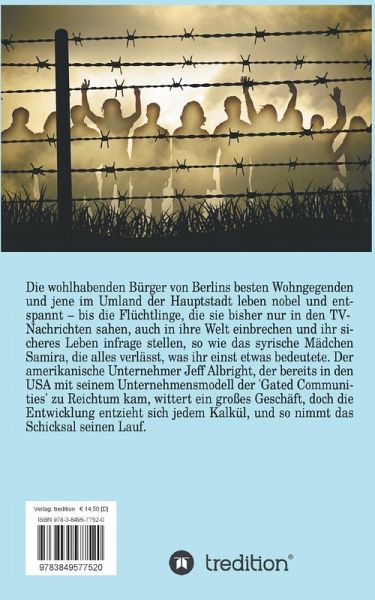 Die wohlhabenden Bürger von Berlins besten Wohngegenden und jene im Umland der Hauptstadt leben nobel und entspannt - bis die Flüchtling, die sie bisher nur in den TV-Nachrichten sahen, auch in ihre Welt einbrechen und ihr sicheres Leben infrage stellen. Die Bürger aus Grunewald und den feinen Potsdamer Wohnvierteln sehen ihre Zukunft und die ihrer Kinder bedroht, denn auch in ihrer Nachbarschaft gibt es immer mehr Zuwanderer aus den neuen Mitgliedsstaaten der EU, und es kommen weitere hinzu. Sie gehen bis dahin ungeahnte Koalitionen ein mit Verbrechern und Geschäftemachern, die helfen sollen, die Existenz ihrer vermeintlich heilen Welt zu retten, abzuschotten gegen jene, die dazu kommen. So wie das syrische Mädchen Samira, die alles verlässt, was ihr einst etwas bedeutete. Da ist auch Paul van Orten, ein vom Polosport begeisterter, sehr reicher, aber orientierungslos durchs Leben Wandelnder, der sich mit fremden Leben auseinandersetzen muss. Der amerikanische Unternehmer Jeff Albright, der bereits in den USA mit seinem Unternehmensmodell der Gated Communities zu Reichtum kam, wittert ein großes Geschäft. Doch die Entwicklung entzieht sich jedem Kalkül, das Schicksal nimmt seinen Lauf. Eine Rolle spielt auch der schmierige, gewissenlose Meinhard von Knierim, Beamter der Potsdamer Stadtverwaltung, der darauf hofft, durch Albright Karriere zu machen und ihm deshalb bei den Bauprojekten hilft. Unterstützt wird er von Jens Rudelt, einem rechtsgesinnten Politiker, der mit Stimmungsmache gegen Zuzügler seiner Partei zum Durchbruch verhelfen will. Er träumt von einem Platz im Parlament für sich und von der Regierungsverantwortung seiner Partei. Und dann gibt es noch Jürgen Dörrfeld, ein deutschlandweit bekannter und von sich maßlos überzeugter Manager, von dessen Ansiedlung in einem seiner Wohnprojekte sich Albright eine Sogwirkung für alle schutzbedürftigen Bürger erhofft. Und so steuert die Entwicklung auf einen Höhepunkt zu, dessen Ergebnis gänzlich unerwartet ist.