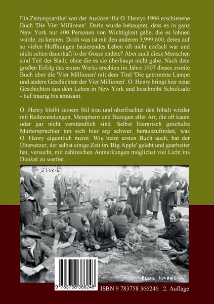 Ein Zeitungsartikel war der Auslöser für O. Henrys 1906 erschienene Buch 'Die Vier Millionen'. Darin wurde behauptet, dass es in ganz New York nur 400 Personen von Wichtigkeit gäbe, die es lohnen würde, zu kennen. Doch was ist mit den anderen 3,999,600, deren auf so vielen Hoffnungen basierendes Leben oft nicht einfach war und nicht selten dauerhaft in der Gosse endete? Aber auch diese Menschen sind Teil der Stadt, ohne die es sie überhaupt nicht gäbe. Nach dem großen Erfolg des ersten Werks erschien im Jahre 1907 dieses zweite Buch über die 'Vier Millionen' mit dem Titel 'Die getrimmte Lampe und andere Geschichten der Vier Millionen'. O. Henry bringt hier neue Geschichten aus dem Leben in New York und beschreibt Schicksale - tief traurig bis amüsant.Wie dem auch sei, O. Henry bleibt seinem Stil treu und überfrachtet den Inhalt mit Redewendungen, Metaphern und Bezügen aller Art, die oft kaum oder gar nicht verständlich sind. Selbst literarisch geschulte Muttersprachler tun sich hier arg schwer, herauszufinden, was O. Henry eigentlich meint - die einschlägigen literarischen Foren sind voll von Fragen nach dem tieferen Sinn, die nicht immer befriedigend beantwortet werden konnten und manche Versuche von Erklärungen verharren bestenfalls im Bereich der Spekulation.Wie beim ersten Buch auch, hat der Übersetzer, der selbst einige Zeit im 'Big Apple' gelebt und gearbeitet hat, versucht, möglichst viel Licht ins Dunkel zu werfen. Dies geschah in Endnoten, Anmerkung direkt im Text oder wurde in diesen eingearbeitet - wenn es kurz zu erklären war. Vielleicht findet der O.Henry-Forscher dabei ja einige neue 'Erleuchtungen'.