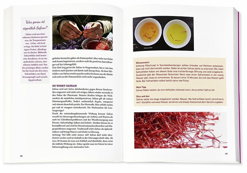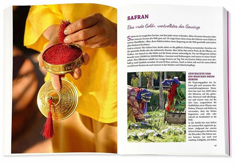Christine Ferrari, geb. 1960 in Basel, lebt seit zehn Jahren in Marokko. Während der Erntezeit beschäftigt sie bis zu fünfzig Berberinnen und die Qualität ihres "roten Goldes" ist weltweit bekannt. Ihr botanischer Garten fasziniert Touristen aus der ganzen Welt.