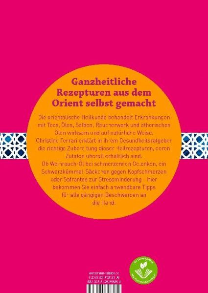 Christine Ferrari lebt seit über 10 Jahren auf einer Safran- und Kräuterfarm in Marokko und ist eine profunde Kennerin der Pflanzenheilkunde und Berber-Kultur. In Die Gewürz-Apotheke fasst sie erstmals die geheimen Heilrezepte des Orients zusammen. Mit alltäglichen Hausmitteln und Kräutern wie zum Beispiel Arganöl, Kümmel oder Safran lassen sich ganz einfach Salben und Tinkturen herstellen, die gegen gängige Beschwerden wirken. Verdauungs- oder Kreislaufprobleme, Rückenschmerzen oder Erkältungen können so auf natürliche Weise behandelt werden.