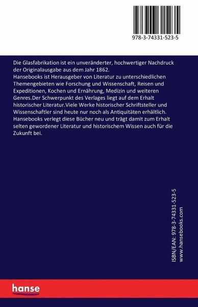 Die Glasfabrikation ist ein unveränderter, hochwertiger Nachdruck der Originalausgabe aus dem Jahr 1862.