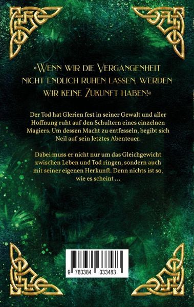 »Wenn wir die Vergangenheit nicht endlich ruhen lassen, werden wir keine Zukunft haben!«Der Tod hat Glerien fest in seiner Gewalt und aller Hoffnung ruht auf den Schultern eines einzelnen Magiers.Um dessen Macht zu entfesseln, begibt sich Neil auf sein letztes Abenteuer.Dabei muss er nicht nur um das Gleichgewicht zwischen Leben und Tod ringen, sondern auch mit seiner eigenen Herkunft. Denn nichts ist so, wie es scheint ...