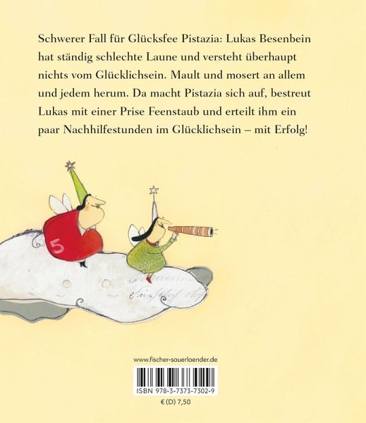 Manche Menschen verstehen nichts vom Glücklichsein. Sie sind hartnäckige Fälle von Griesgrämigkeit und schlechter Laune. Solche Unglücksraben sind Glücksfee Pistazias Spezialgebiet. Ihr Feenstaub macht die Welt so grün und blau und rot und gelb, dass man vor Glück platzen könnte! Hilft garantiert!
