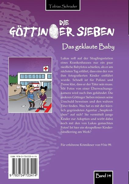Lukas soll auf der Säuglingsstation eines Krankenhauses nur ein paar niedliche Babyfotos schießen, als er am nächsten Tag erfährt, dass eins der von ihm fotografierten Kinder entführt wurde. Schnell ist für Polizei und Presse klar, dass er der Täter sein muss. Mit Fotos von einer Überwachungskamera wird nach ihm gefahndet. Die anderen Göttinger Sieben müssen seine Unschuld beweisen und den wahren Täter finden. Was hat es mit der kürzlich gegründeten Agentur "Seepferdchen" auf sich? Sie vermittelt junge Kinder zur Adoption und wirbt dabei noch mit den von Lukas gemachten Fotos! Ist hier ein skrupelloser Kinderhändlerring am Werk?