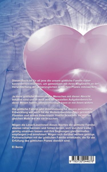 In diesem Buch werden Mitglieder unserer göttlichen Familie beschrieben, mit der Absicht und dem Ziel, sie den Menschen bekannter zu machen und näher zu bringen. Es ist besonders für die Menschen gedacht, die einen aktiven Beitrag in Zusammenarbeit mit der göttlichen Familie für die Erfüllung des göttlichen Planes leisten wollen. Je mehr göttliche Wesen einem Menschen mit dieser Absicht bekannt sind und er weiß welche speziellen Aufgabenbereiche diese Wesen haben, umso vielseitiger kann er mit ihnen wirken. Mögen die Leser/Leserinnen die göttliche Familie näher kennen- und fühlen lernen, und auf diesem Wege ihre Hilfe und ihre Segnungen bewusster annehmen können.