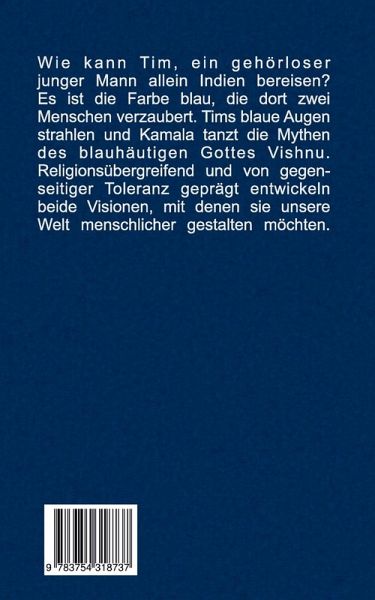 Die Farbe blau verzaubert 2 Menschen: Die strahlend blauen Augen eines gehörlosen jungen Mannes verzaubern eine indische Tänzerin, und getanzte Mythen des blauhäutigen Gottes Vishnu verzaubern einen Deutschen.Beide wachsen heran, treffen sich und wollen mit ihren Visionen die Welt verbessern.