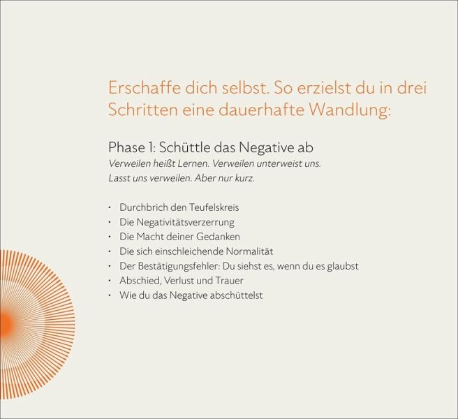 Nicole Vignola zeigt dir neue Wege, dich selbst anders zu sehen und Kontrolle über deine Gedanken zu erlangen. Du hörst auf, so viel zu grübeln, kannst endlich die negativen, einschränkenden Glaubenssätze hinter dir lassen, die dir bislang im Weg standen, und lernst, neue Gewohnheiten in deinen Alltag einzuführen. Dadurch kannst du fokussierter in den Tag starten, machst dir weniger Sorgen, schläfst erholsamer und kannst besser mit Stress umgehen. Change your life in just five minutes a day!