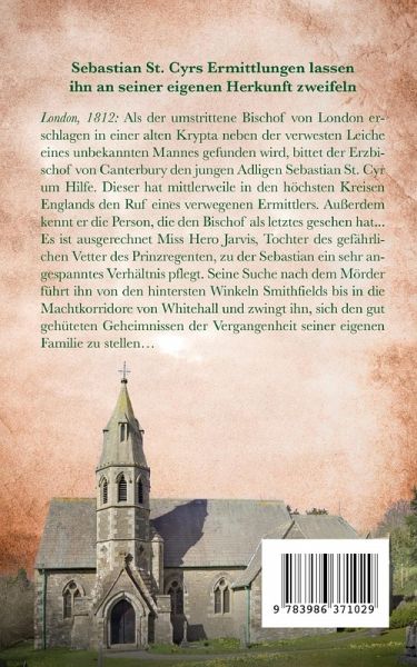 Sebastian St. Cyrs Ermittlungen lassen ihn an seiner eigenen Herkunft zweifeln ?Die packende Krimi-Reihe im historischen England geht weiterLondon, 1812: Als der umstrittene Bischof von London erschlagen in einer alten Krypta neben der verwesten Leiche eines unbekannten Mannes gefunden wird, bittet der Erzbischof von Canterbury den jungen Adligen Sebastian St. Cyr um Hilfe. Dieser hat mittlerweile in den höchsten Kreisen Englands den Ruf eines verwegenen Ermittlers. Außerdem kennt er die Person, die den Bischof als letztes gesehen hat ? Es ist ausgerechnet Miss Hero Jarvis, Tochter des gefährlichen Vetter des Prinzregenten, zu der Sebastian ein sehr angespanntes Verhältnis pflegt. Seine Suche nach dem Mörder führt ihn von den hintersten Winkeln Smithfields bis in die Machtkorridore von Whitehall und zwingt ihn, sich den gut gehüteten Geheimnissen der Vergangenheit seiner eigenen Familie zu stellen ?Weitere Titel dieser ReiheDie Schatten von Westminster (ISBN: 9783968172347)Die Tote von Brighton (ISBN: 9783968173924)Der Mörder von West End (ISBN: 9783968176765)Das Schweigen von Mayfair (ISBN: 9783968177502)Erste Leser:innenstimmen?Bisher konnte ich keinen Band der Sebastian St. Cyr Reihe mehr aus der Hand legen. Auch der fünfte Band überzeugt auf voller Linie!??Eintauchen in das viktorianische England á la Sherlock Holmes ? ein toller historischer Krimi!??C. S. Harris hat eine spannende Welt rund um den Ermittler Sebastian St. Cyr erschaffen. Unerwartete Wendungen sorgen immer wieder für Überraschungen und man rätselt richtig mit.??Eine Ermittlung in Kreisen des englischen Adels, düstere Atmosphäre in Großbritannien und ein sympathischer Detektiv mit eigenen Familiengeheimnissen.??Vielschichtige Charaktere und eine fesselnde Handlung ? Toller und mysteriöser Krimi!?