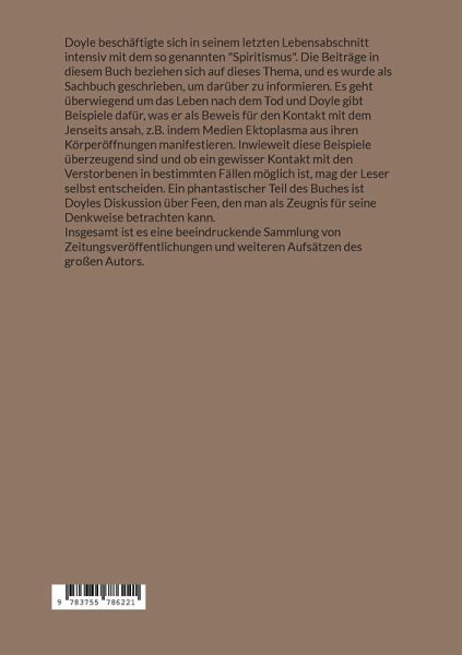 Doyle beschäftigte sich in seinem letzten Lebensabschnitt intensiv mit dem so genannten "Spiritismus". Die Beiträge in diesem Buch beziehen sich auf dieses Thema, und es wurde als Sachbuch geschrieben, um darüber zu informieren. Es geht überwiegend um das Leben nach dem Tod und Doyle gibt Beispiele dafür, was er als Beweis für den Kontakt mit dem Jenseits ansah, z.B. indem Medien Ektoplasma aus ihren Körperöffnungen manifestieren. Inwieweit diese Beispiele überzeugend sind und ob ein gewisser Kontakt mit den Verstorbenen in bestimmten Fällen möglich ist, mag der Leser selbst entscheiden. Ein phantastischer Teil des Buches ist Doyles Diskussion über Feen, den man als Zeugnis für seine Denkweise betrachten kann. Insgesamt ist es eine beeindruckende Sammlung von Zeitungsveröffentlichungen und weiteren Aufsätzen des großen Autors.