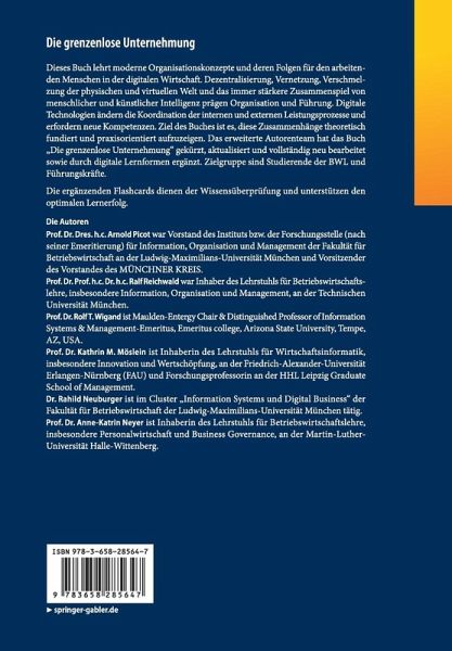 Dieses Buch lehrt moderne Organisationskonzepte und deren Folgen für den arbeitenden Menschen in der digitalen Wirtschaft. Dezentralisierung, Vernetzung, Verschmelzung der physischen und virtuellen Welt und das immer stärkere Zusammenspiel von menschlicher und künstlicher Intelligenz prägen Organisation und Führung. Digitale Technologien ändern die Koordination der internen und externen Leistungsprozesse und erfordern neue Kompetenzen. Ziel des Buches ist es, diese Zusammenhänge theoretisch fundiert und praxisorientiert aufzuzeigen. Das erweiterte Autorenteam hat das Buch "Die grenzenlose Unternehmung" gekürzt, aktualisiert und vollständig neu bearbeitet sowie durch digitale Lernformen ergänzt. Zielgruppe sind Studierende der BWL und Führungskräfte.