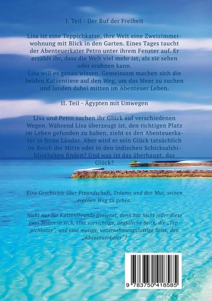 Lisa ist eine Teppichkatze, ihre Welt eine Zweizimmerwohnung mit Blick in den Garten. Eines Tages taucht der Abenteuerkater Petro unter ihrem Fenster auf. Er erzählt ihr, dass die Welt viel mehr ist, als sie sehen oder erahnen kann. Lisa will es genau wissen. Gemeinsam machen sich die beiden Katzentiere auf den Weg, um ihr Glück zu suchen.Aber lässt sich das Glück tatsächlich am Meer, im Reich der Mitte oder in den indischen Schicksalsbibliotheken finden? Und was ist das überhaupt - das Glück?Eine Geschichte über Freundschaft, Träume und den Mut, seinen eigenen Weg zu gehen. Nicht nur für Katzenfreunde geeignet.Jetzt beide Teile in einem Band.