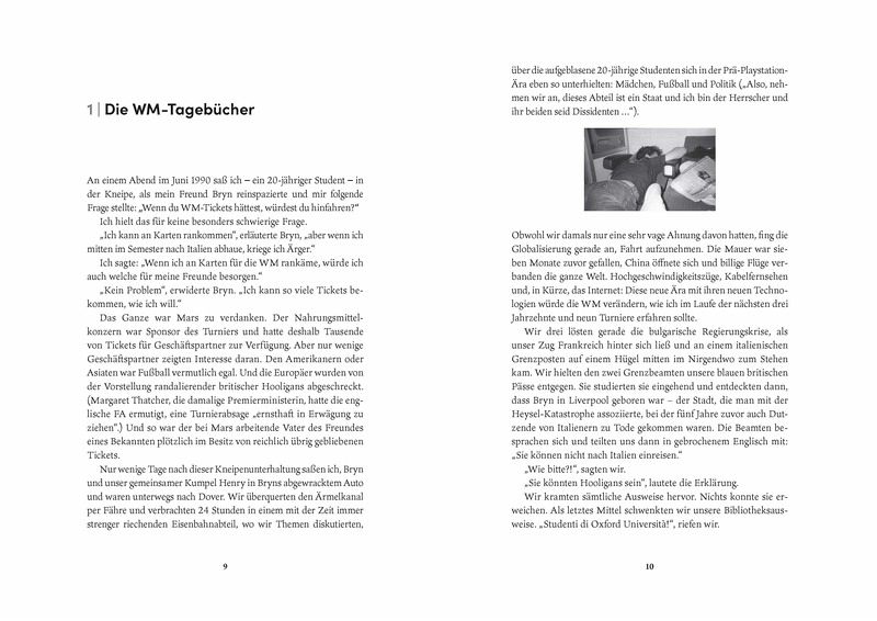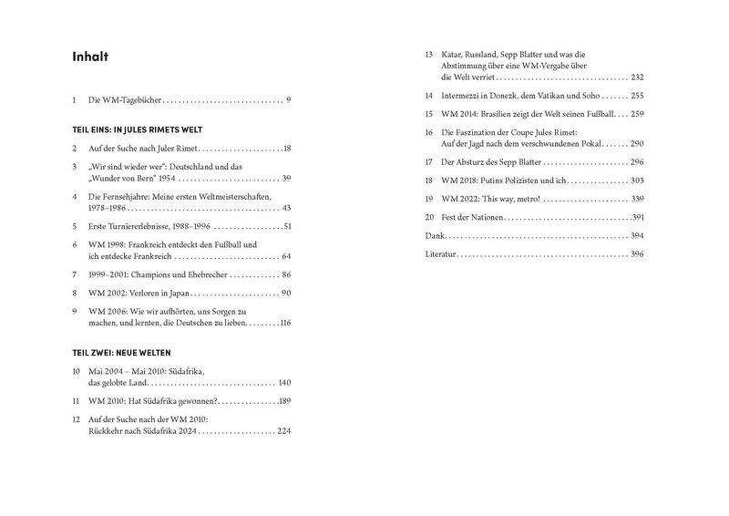 Seit 1990 hat Simon Kuper keine Fußball-Weltmeisterschaft ausgelassen, er war bei allen neun Turnieren vor Ort und hat seine Beobachtungen in 25 Notizbüchern festgehalten. Dabei legt er den Fokus nicht auf 1:0-Berichterstattung, sondern auf die vielen abseitigen Geschichten rund um das größte Fußballfest der Erde. So erfährt der Leser etwa, weshalb die deutsche Mannschaft ihren Bösewicht-Status als "Darth Vader" der WM verlor, wie ein Indigenen-Stamm mit dem 1:7-Desaster Brasiliens umging und auch, warum der Autor von der WM 1998 in Frankreich dermaßen begeistert war, dass er seinen topdotierten Job in London kündigte und spontan nach Paris umzog.