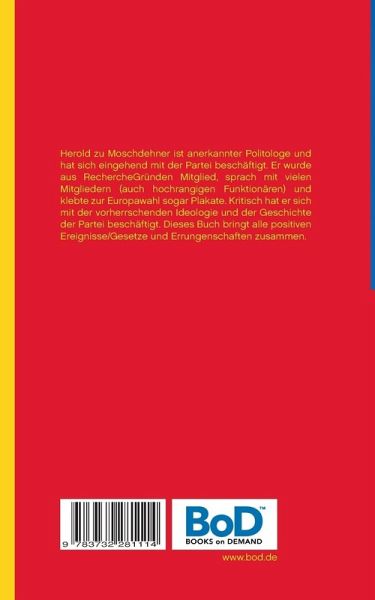 Herold zu Moschdehner ist anerkannter Politologe und hat sich eingehend mit der Partei beschäftigt. Er wurde aus RechercheGründen Mitglied, sprach mit vielen Mitgliedern (auch hochrangigen Funktionären) und klebte zur Europawahl sogar Plakate. Kritisch hat er sich mit der vorherrschenden Ideologie und der Geschichte der Partei beschäftigt. Dieses Buch bringt alle positiven Ereignisse/Gesetze und Errungenschaften zusammen.
